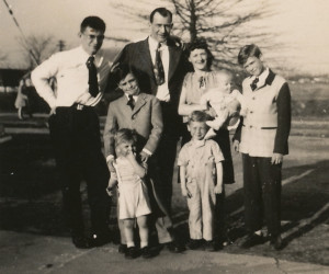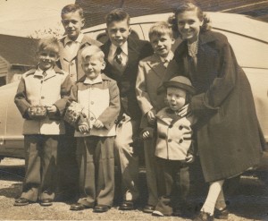 Bob, as he was known, was born in a taxi cab in front of Radio City Music Hall, after his mother (Helen Malvina McGinley) went into labor during the grand opening of a show premiering that night. Bob, and his older brother Roy, were two amazingly gorgeous little kids as they grew up. Initially they lived in the Bronx, first on 165th Street then moving to the Clason Point neighborhood at 5 Murray Court, which doesn’t even exist anymore. When Bob’s dad (Harry Paul Juers) died in 1948, Bob wasn’t even 2 years old. Soon after Murray Court, his mom took Bob & his 5 brothers out to Oyster Bay, where they lived in a second-floor apartment of the Moore’s Building on East Main, where Theodore Roosevelt had summer offices. I’m told his mom cooked for the Roosevelts.